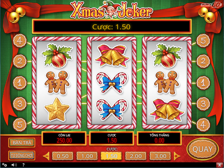 Khi 3 biểu tượng Joker giáng sinh xuất hiện trên thanh cuộn theo các đường thắng ở trên thì kích hoạt mười lượt quay miễn phí.